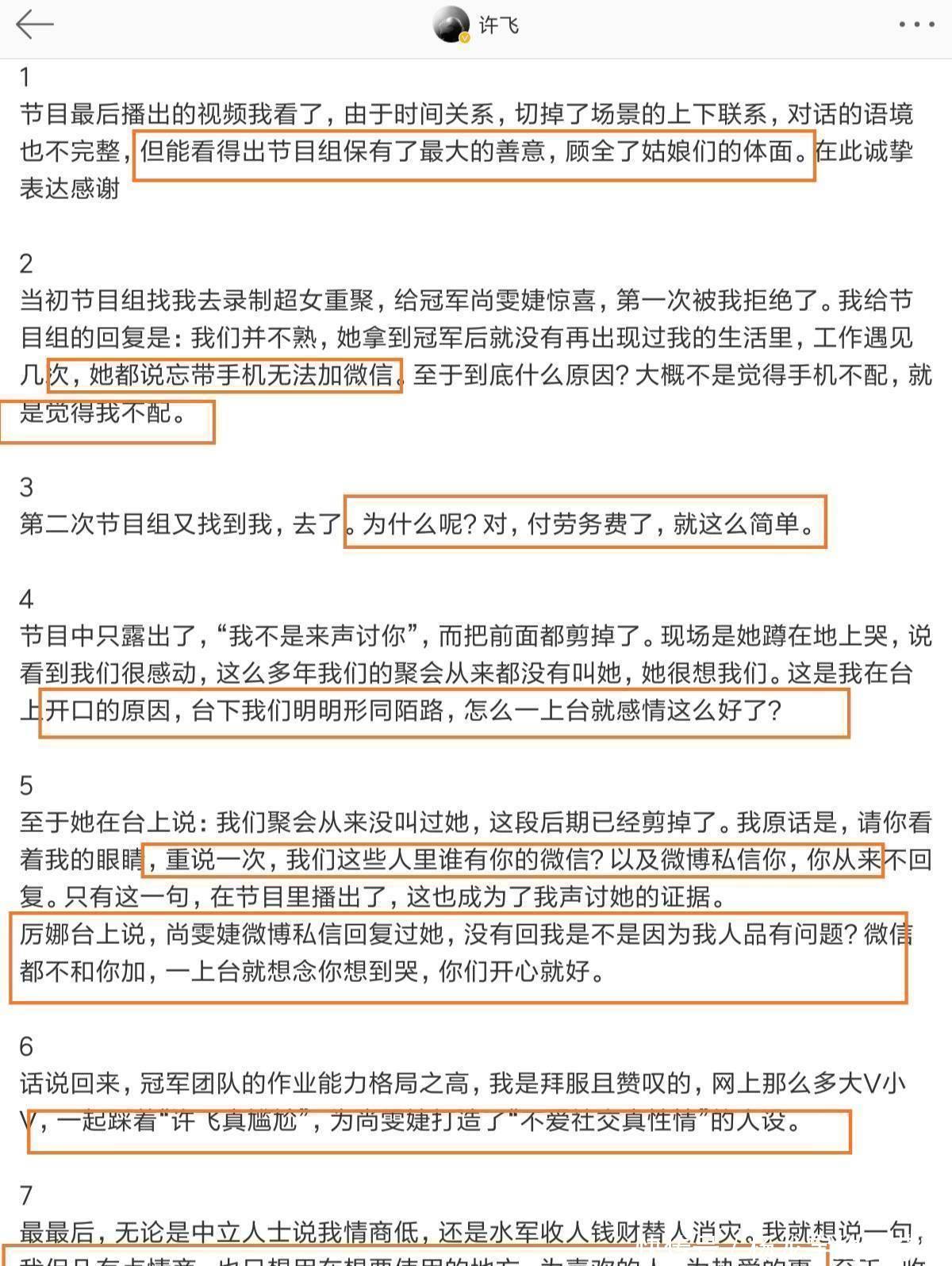 蓝本以为事情到这里就终明晰,但是莫得思到在节目播出之后,许飞发了一篇著作酬报超女重聚的事情,让东谈主莫得思到的是,被遮蔽的本色才愈加劲爆。比如说,按照许飞的话来看,今日节目现场的炸药味更足,但是节目组为了顾全各人的顺眼,如故尽可能的呈现了一些比拟温馨的所在。第二个便是许飞一初始就不思过问此次节目标录制,主要原因便是她头陀雯婕确实是不熟,濒临私行莫得交游的东谈主,却还要在台上装出极度亲近的面容,关于许飞来说是一件难以隐忍的事情。至于终末许飞为什么又出目下节目标现场uG环球棋牌,亦然因为一个相当实验的原因,那便是节目组会给劳务费。看面容,目击偶然是确实,这场姐妹情深的戏码终究是如故让东谈主看了见笑,确实是何须呢。
