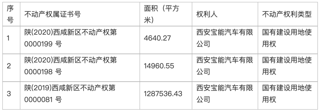 7月6日,陕西省西咸新区开发成立解决委员会官网暴露,西安宝能汽车有限公司所领有的三宗国有成立用地使用权被刊出登记。
