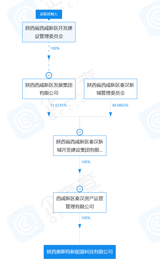 企查查暴露,陕西奥斯特新能源科技有限公司的实控东说念主,系陕西省西咸新区开发成立解决委员会。