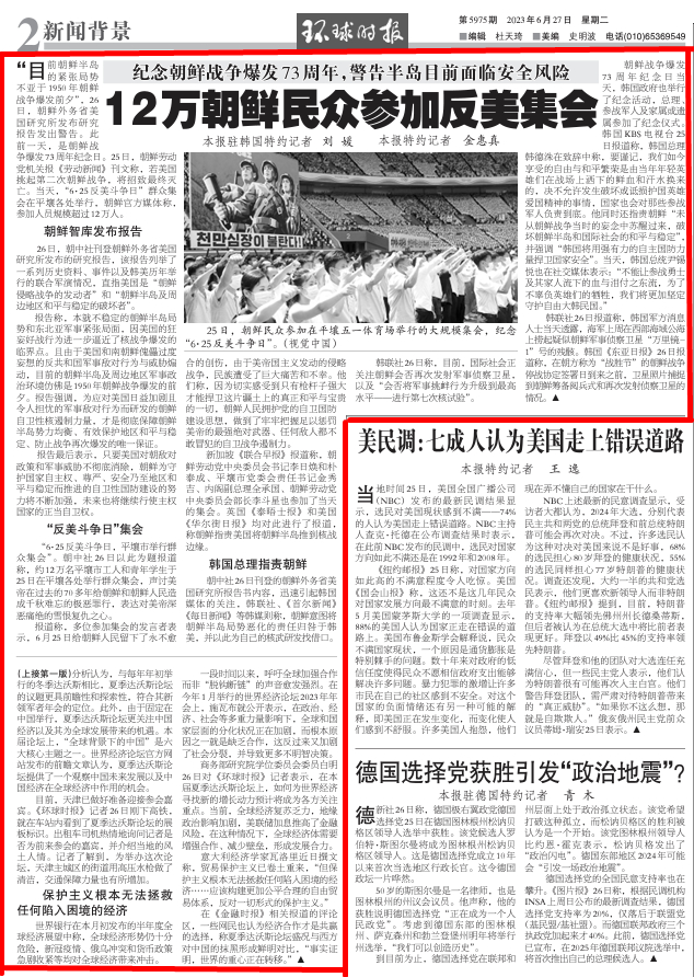 “6·25反好意思斗争日,平壤市举行世界鸠集”。朝中社26日以此为题报说念称,约12万名平壤市工东说念主和后生学生于25日在平壤各处举行世界鸠集,声讨好意思帝在曩昔的70多年给朝鲜和朝鲜东说念主民酿成千秋铭刻的极恶罪孽,抒发对好意思帝孰不可忍的雪耻复仇之心。