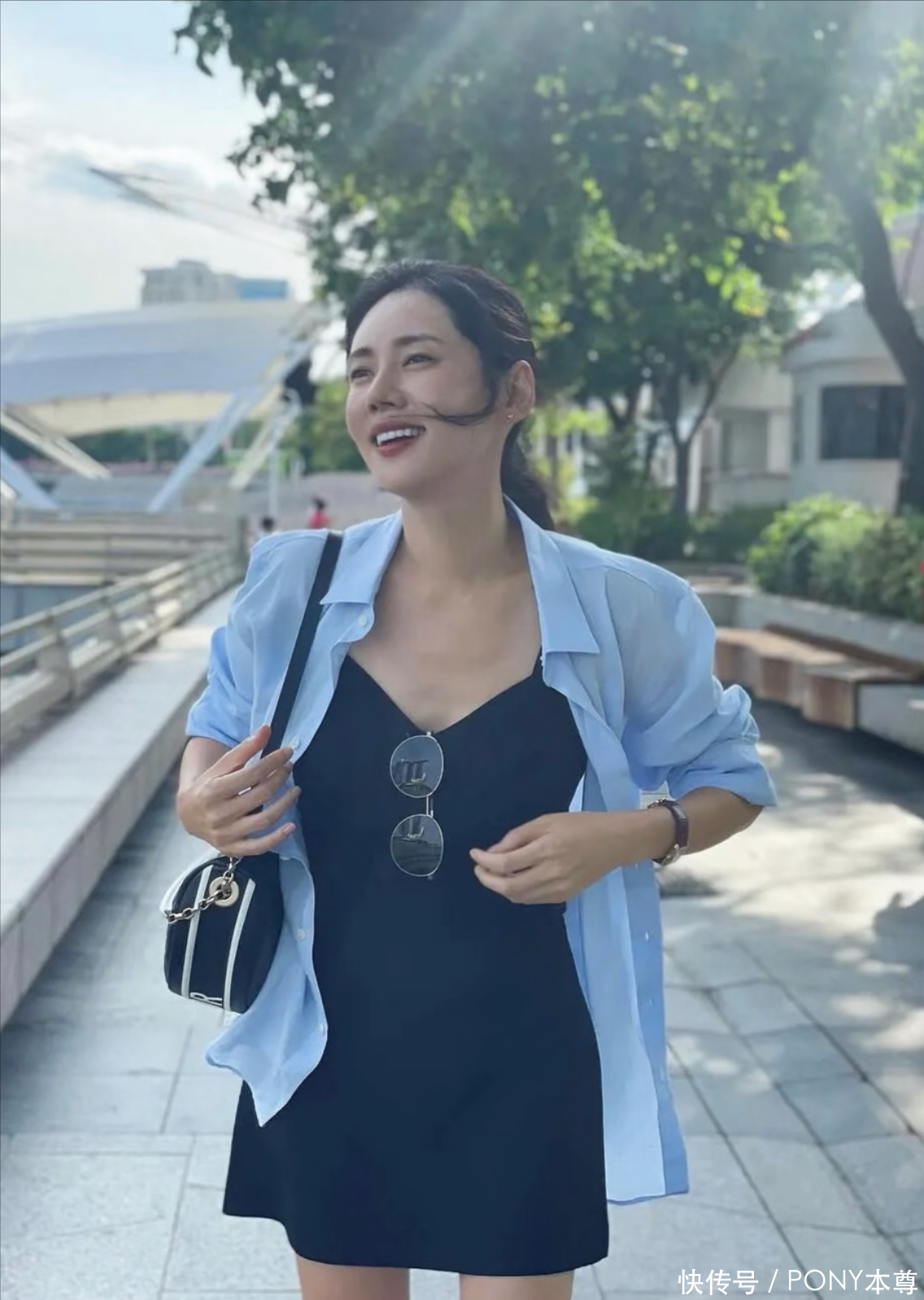 丝质衬衫与半裙酿成渐变档次,知性温婉中透出视觉寒冷,印证了“穿得端淑”与“穿得风景”在盛夏本可兼得。