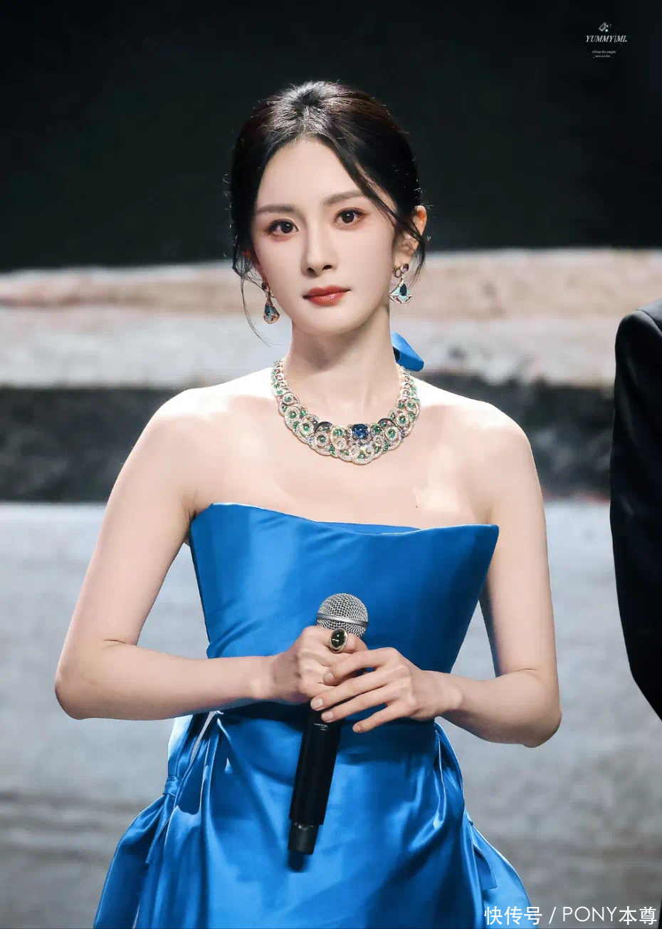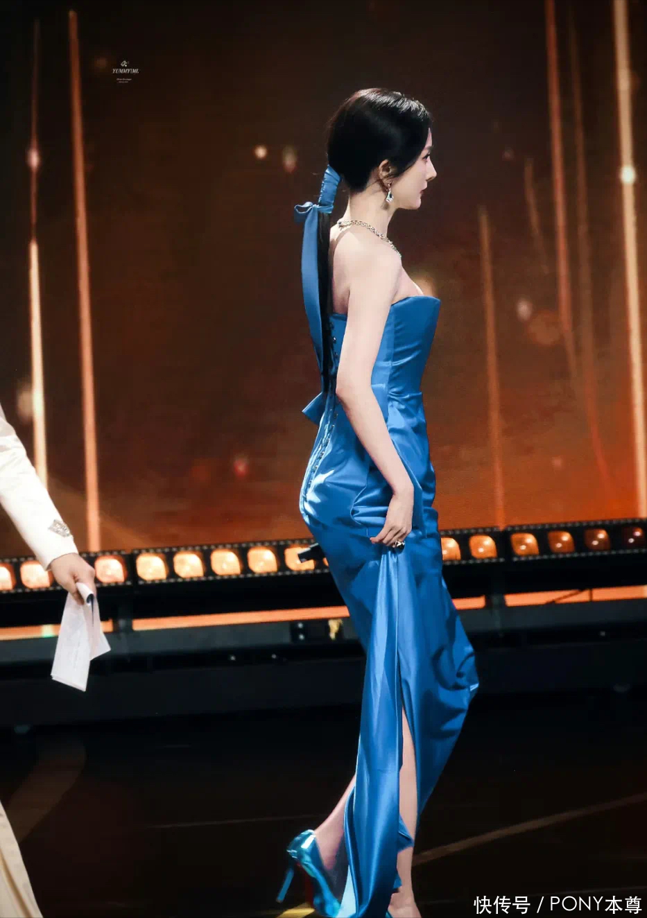 杨幂以一袭缎面海岛蓝抹胸长裙惊艳亮相,通体同色系的镶钻项链与发带如浪尖碎钻,将颜色地谈之好意思推向极致;