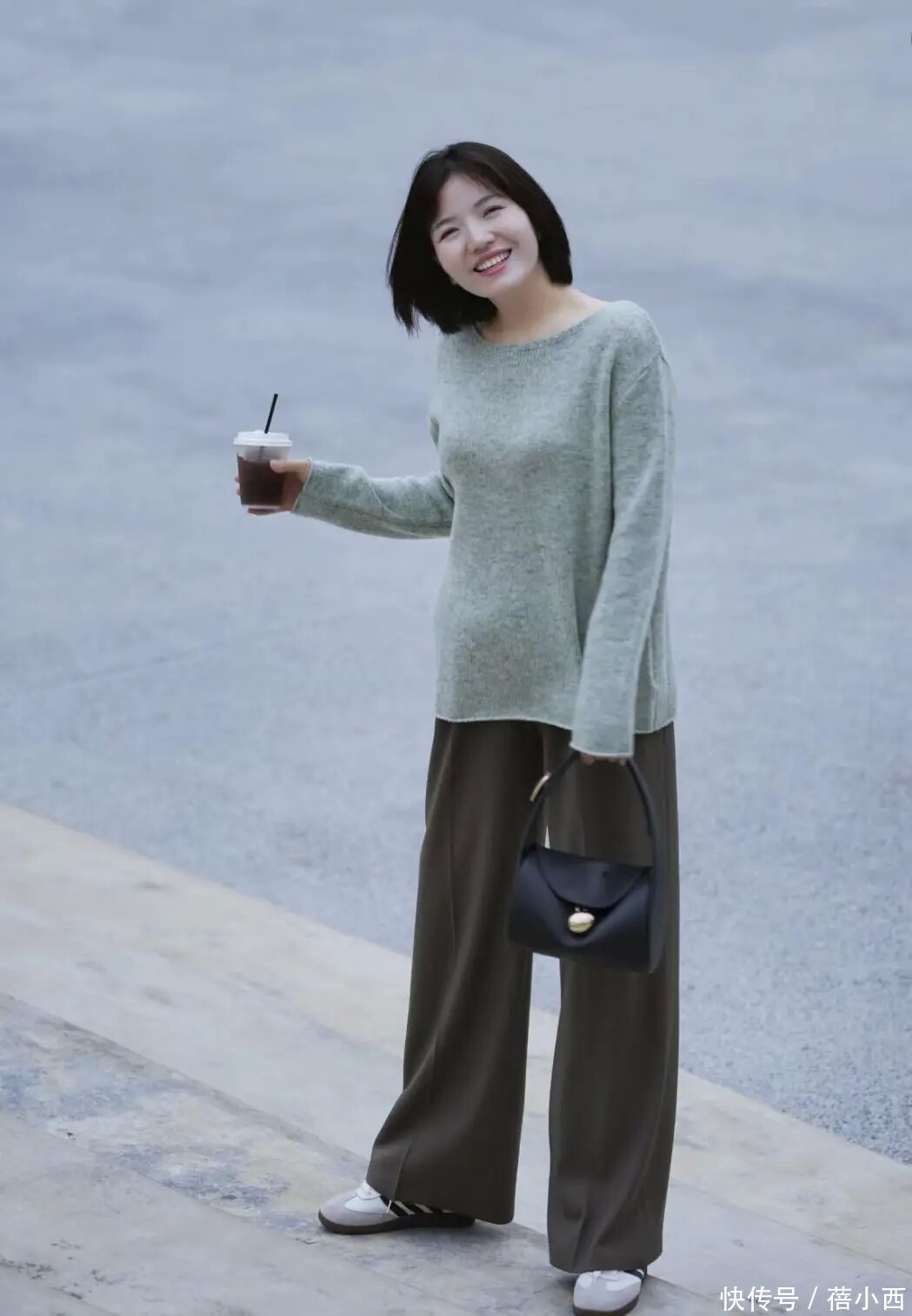 一件宽松的毛衣穿上身,勤俭知性且有氛围感,下半身搭配这种宽松的长款阔腿裤也对双腿起到了延迟的效劳,扫数这个词造型王人是宽松的服装,举座看上去慵懒大气,对于躯壳条款也不高,微胖躯壳的女东谈主也能宽心穿。