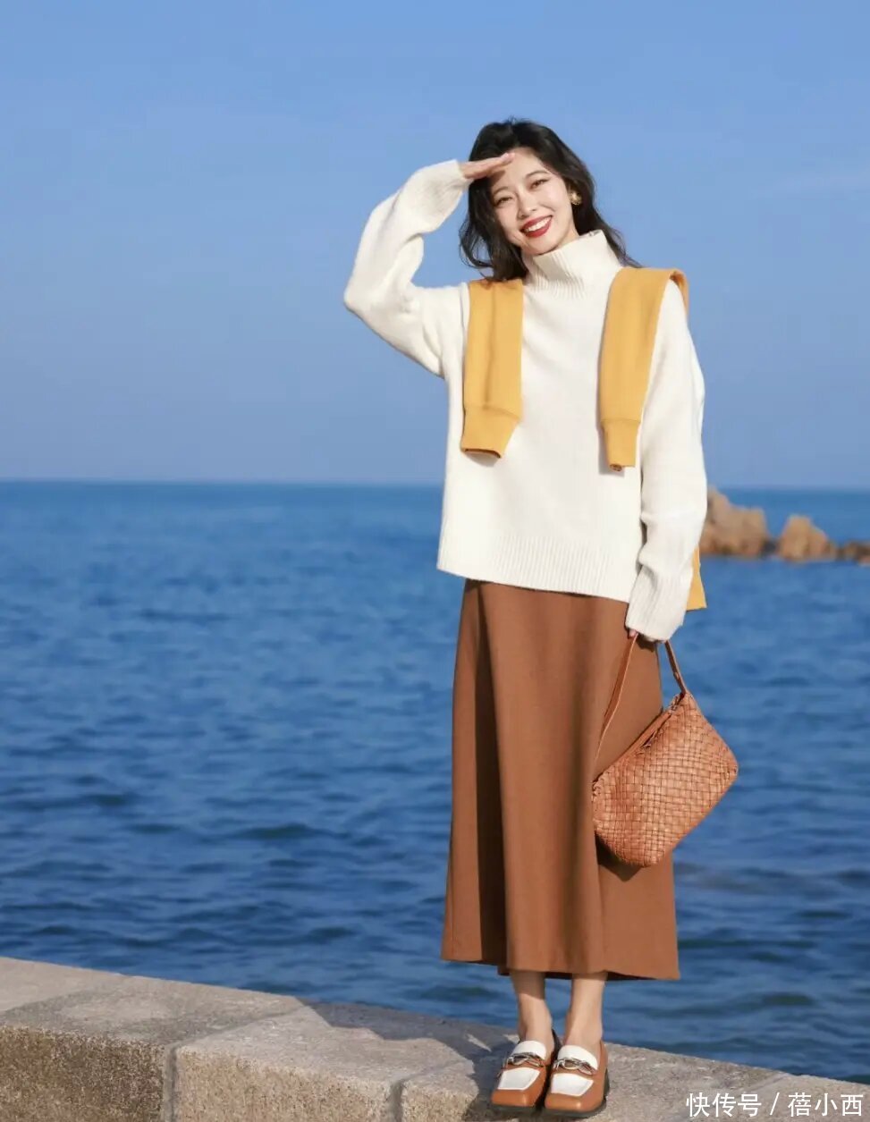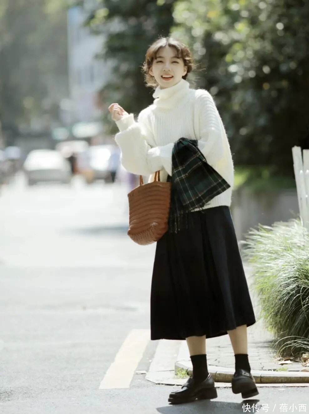 半身裙和毛衣是很好的一组搭档,通过半身裙给咱们的造型赋予讲理知性的好意思,这么孤单白色的毛衣,再搭配着玄色的半身长裙,勤俭低调的配色也演绎出了饱和的高档感。