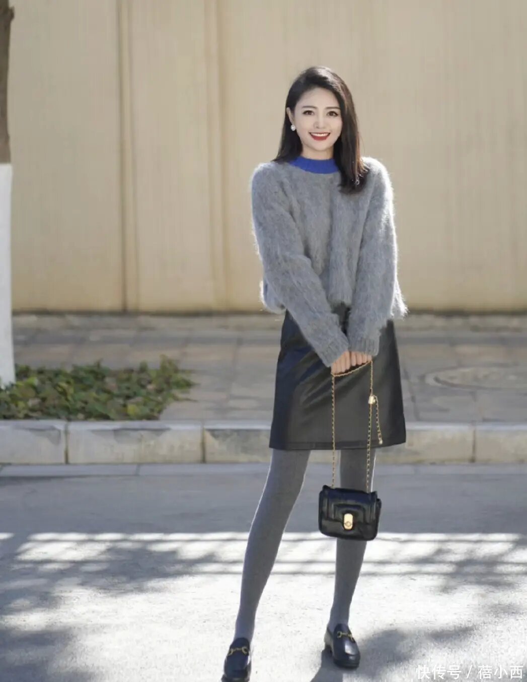 这么一件低调浅陋的灰色毛衣,再搭配上玄色的小皮裙,优柔的真挚面料和硬挺的皮革面料互相碰撞,刚柔并济,也使咱们的造型变得更为丰富。