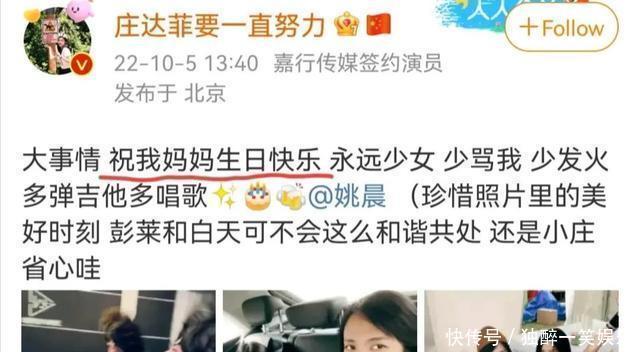 姚晨过生辰那天,庄达菲发微博道喜,径直叫她“老妈”!
